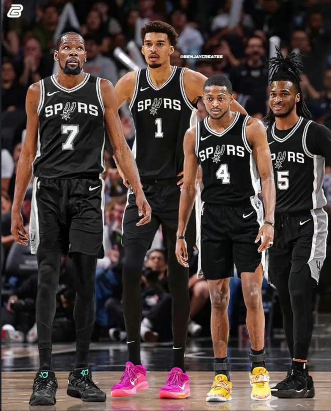 杜兰特的加入,也会让马刺的挡拆质量呈现指数级疯涨,由福克斯发起,阿杜与文班无论谁掩护,都能形成直接面框进攻,就算文班给杜兰特挡拆,也是两杯毒药交给对手选择,这俩人的配合会带动强弱侧联动,让马刺拥有恐怖的三分空间!